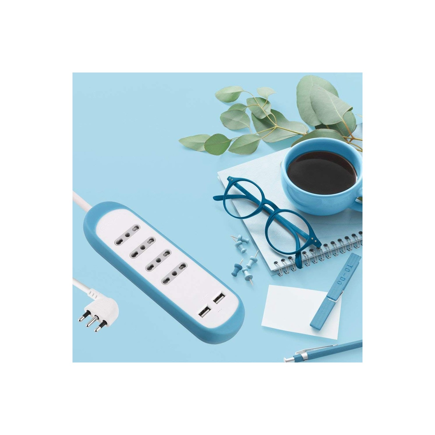 Multipresa da scrivania colorata Blu Electraline - presa elettica salvaspazio con USB