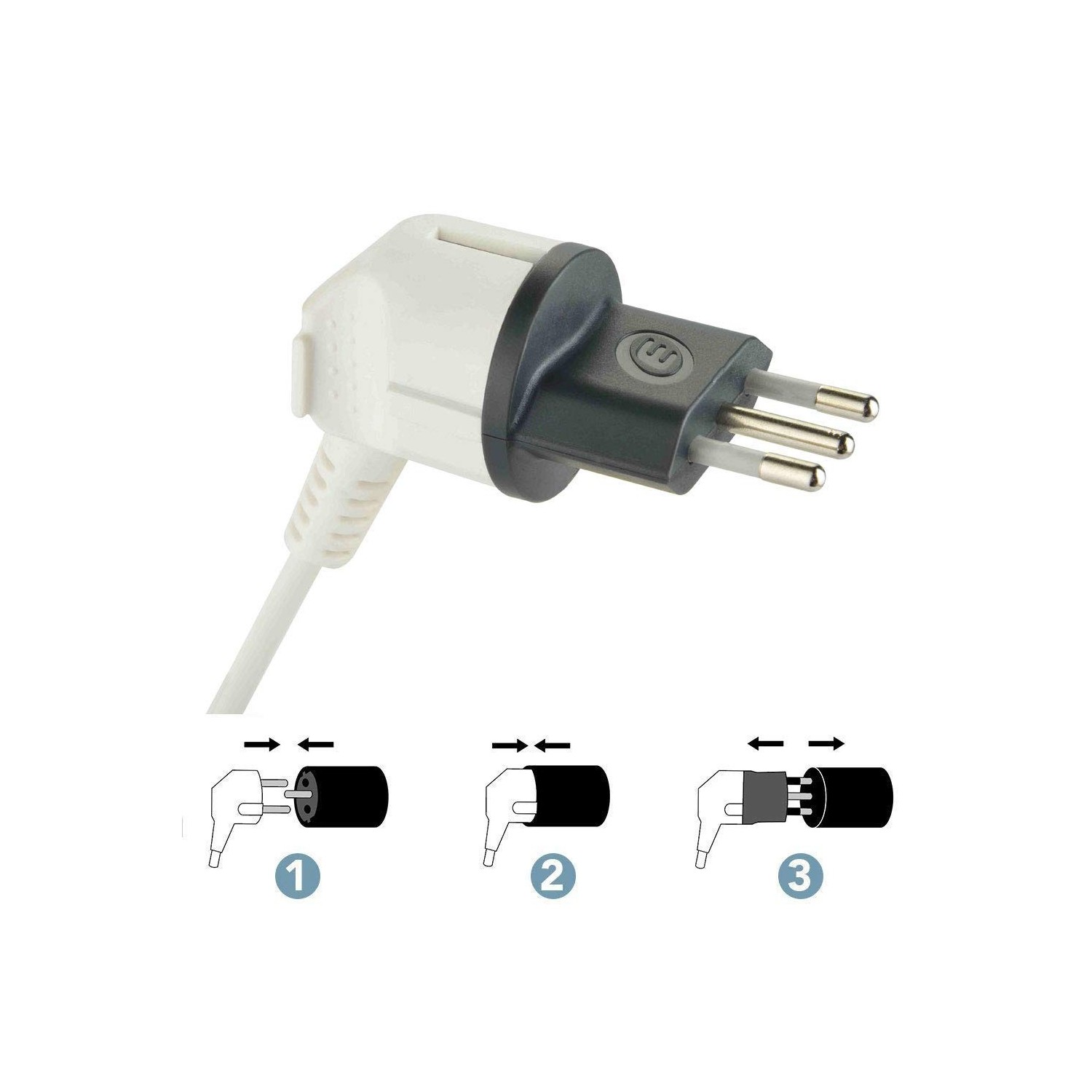Adattatore Schuko Italiana Electraline è un innovativo adattatore permanente che converte le spine Schuko o europee in una spina italiana.