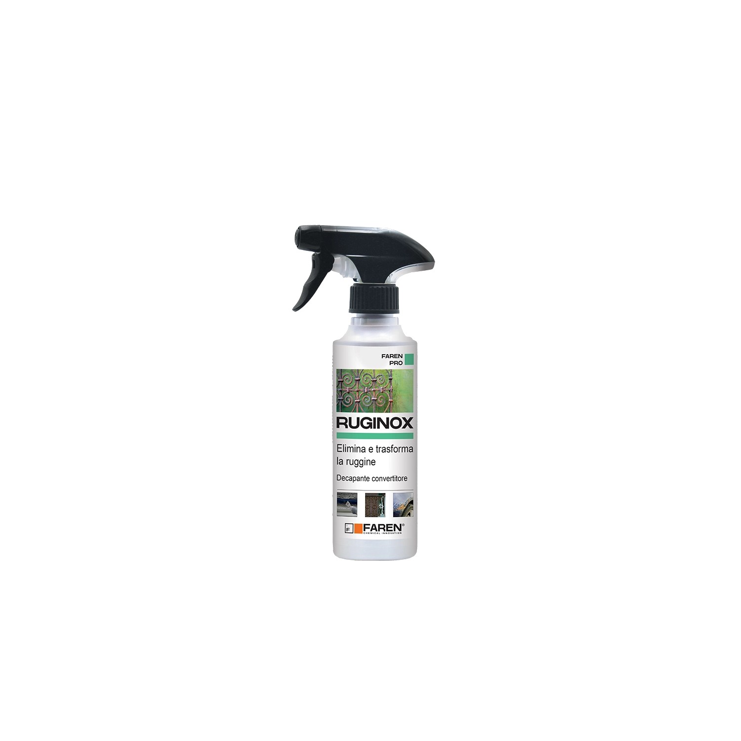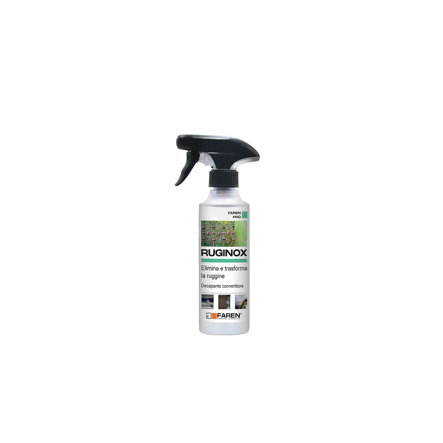 Il Convertitore di Ruggine Spray Faren Ruginox è un prodotto per ruggine in formato triger da 250ml dalla formula avanzata.