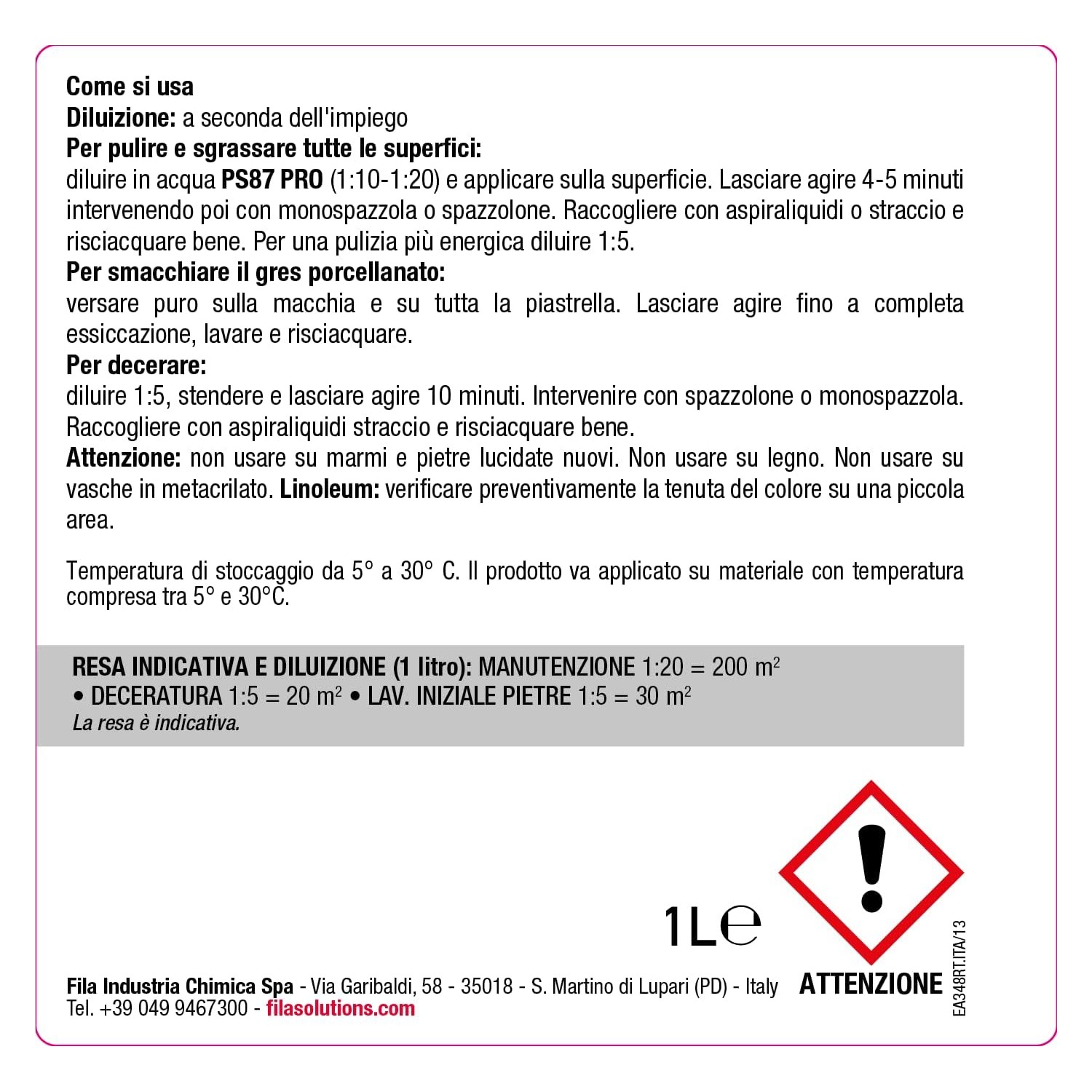 Fila PS87 Pro Sgrassante Professionale Pulizia, Smacchiatura e Deceratura 1lt