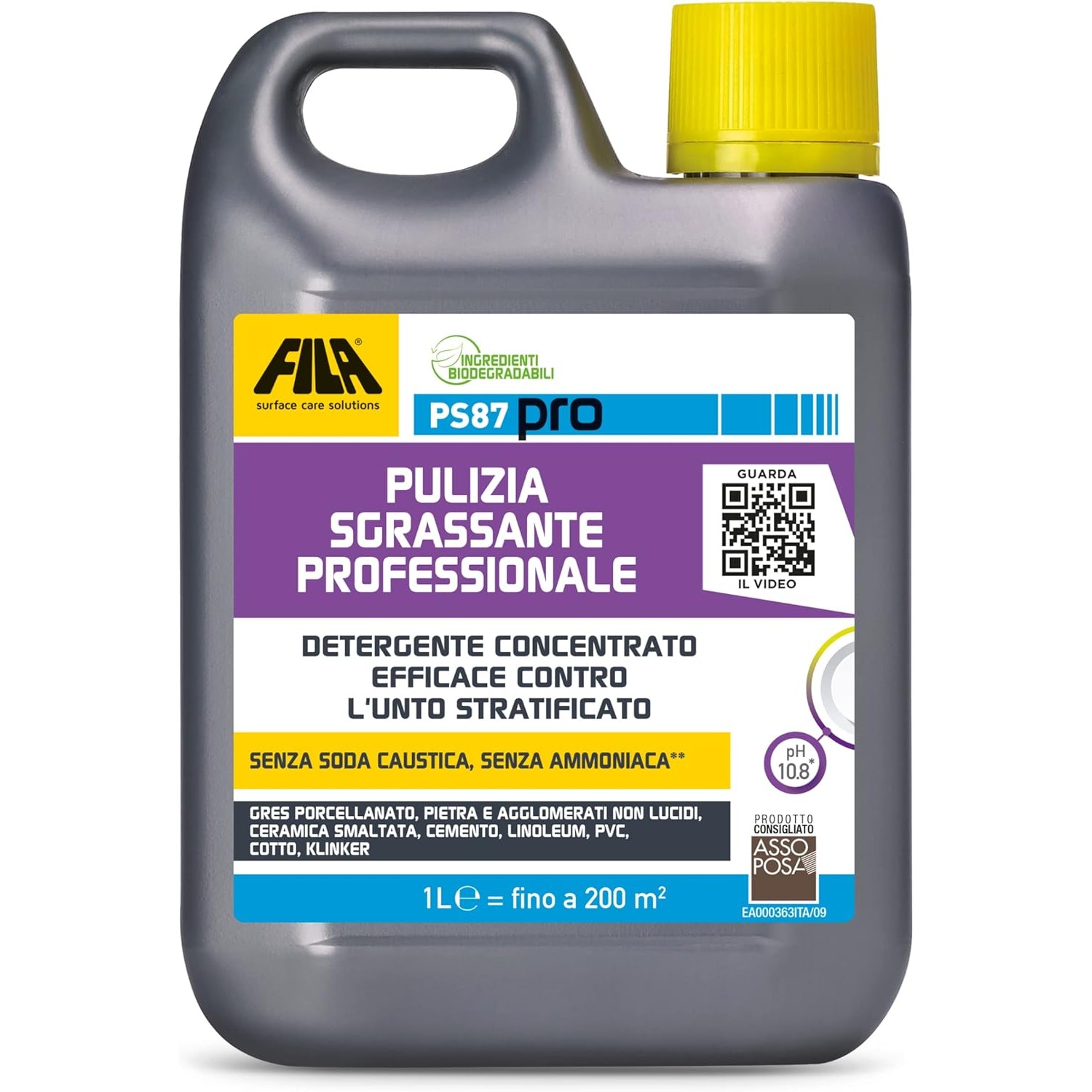 Fila PS87 Pro è uno sgrassante professionale versatile, progettato per pulire, smacchiare e decerare una vasta gamma di superfici.