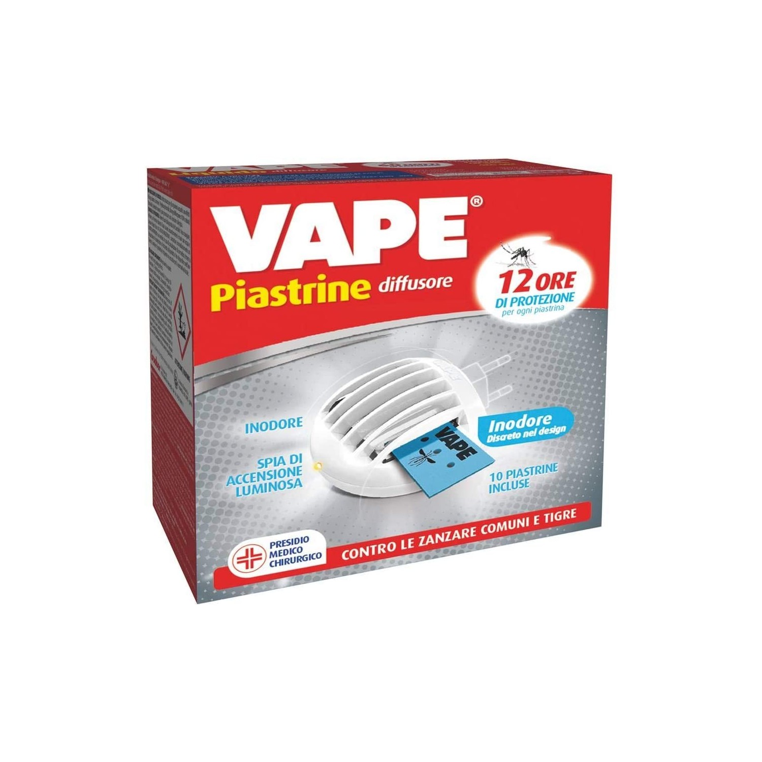 L'Elettroemanatore VAPE MAT è un apparecchio che offre un'emanazione costante del principio attivo contenuto nelle piastrine Vape, grazie al controllo dell’evaporazione durante tutto il periodo di utilizzo.