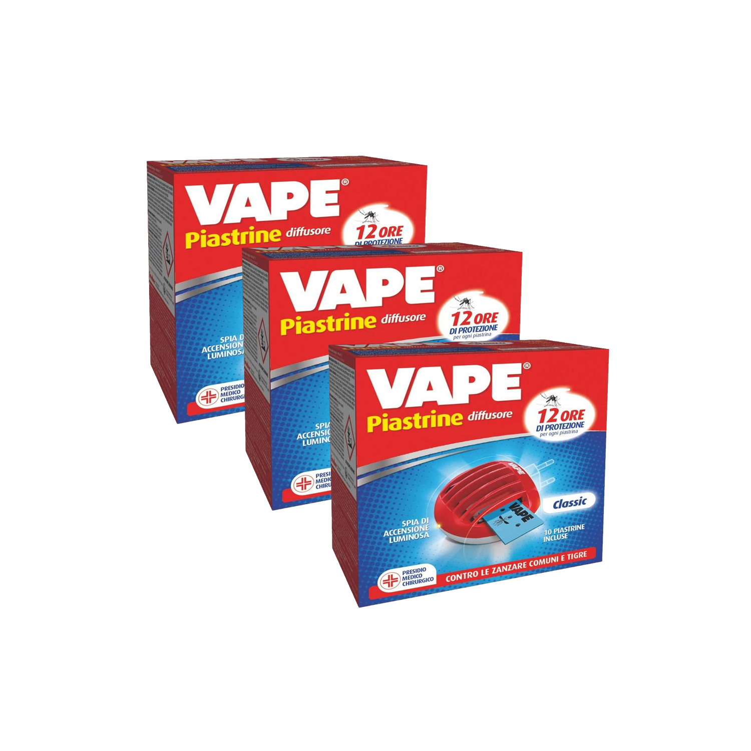 Diffusore per Zanzare Vape - Piastrine con Spina + 10 Piastrine Classic (3 Confezioni)