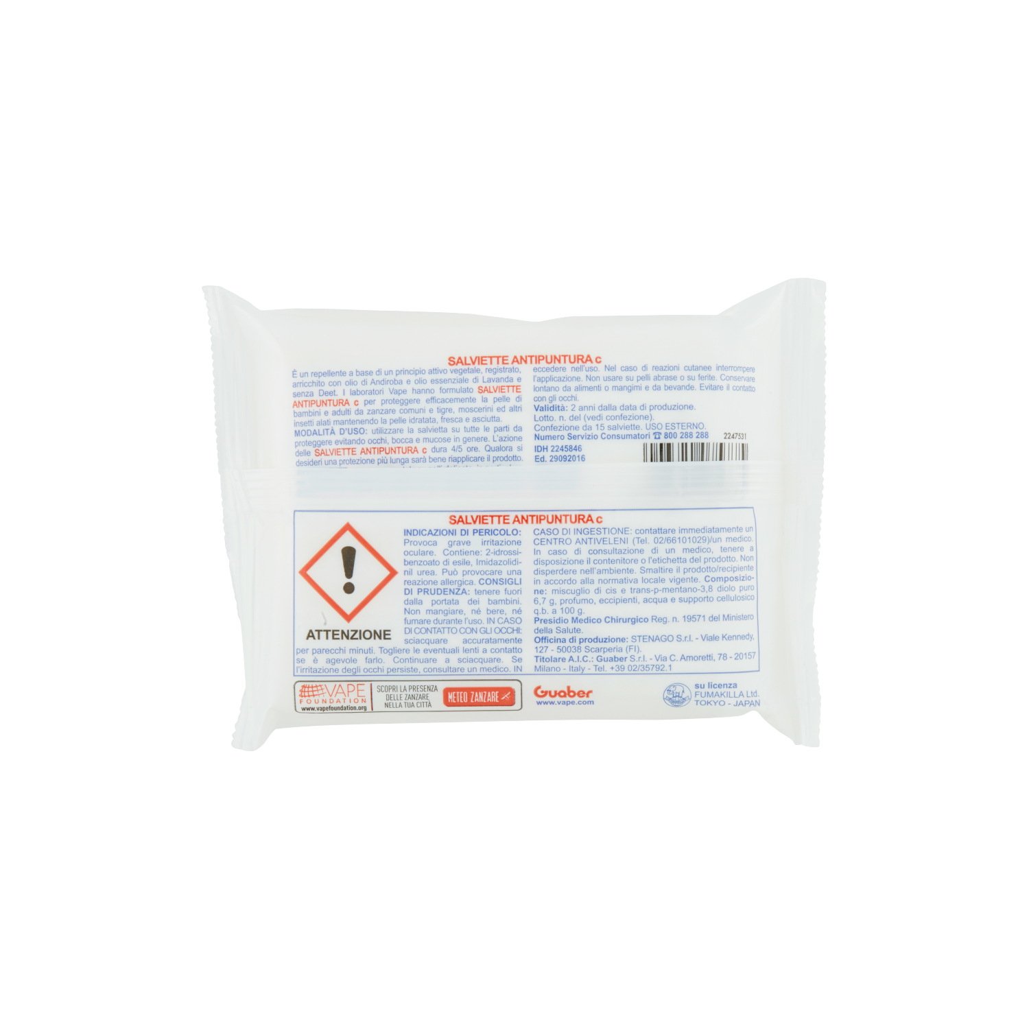Salviette Antizanzare Vape Derm Herbal – Antipuntura con Citronella e Andiroba (15 pezzi)