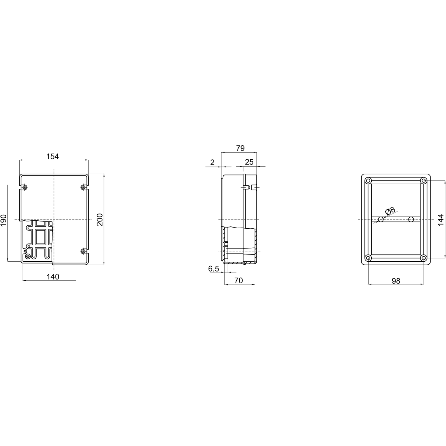 - Dimensioni interne: 190 × 140 × 70 mm;