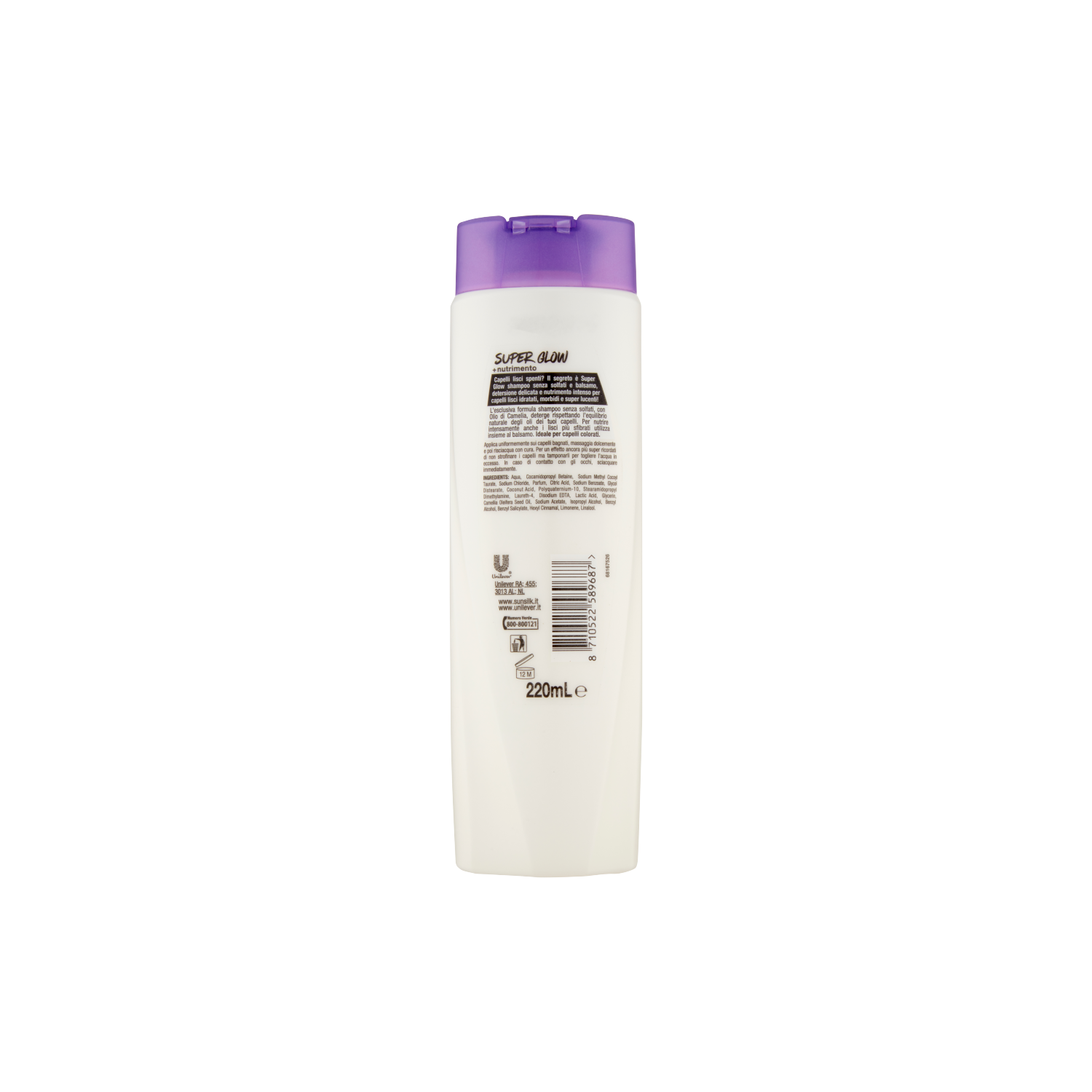 Capelli lisci spenti? Il segreto è Super Glow shampoo senza solfati e balsamo, detersione delicata e nutrimento intenso per capelli lisci idratati, morbidi e super lucenti! L'esclusiva formula shampoo senza solfati, con Olio di Camelia, deterge rispettando l'equilibrio naturale degli oli dei tuoi capelli. Per nutrire intensamente anche i lisci più sfibrati utilizza insieme al balsamo. Ideale per capelli colorati.