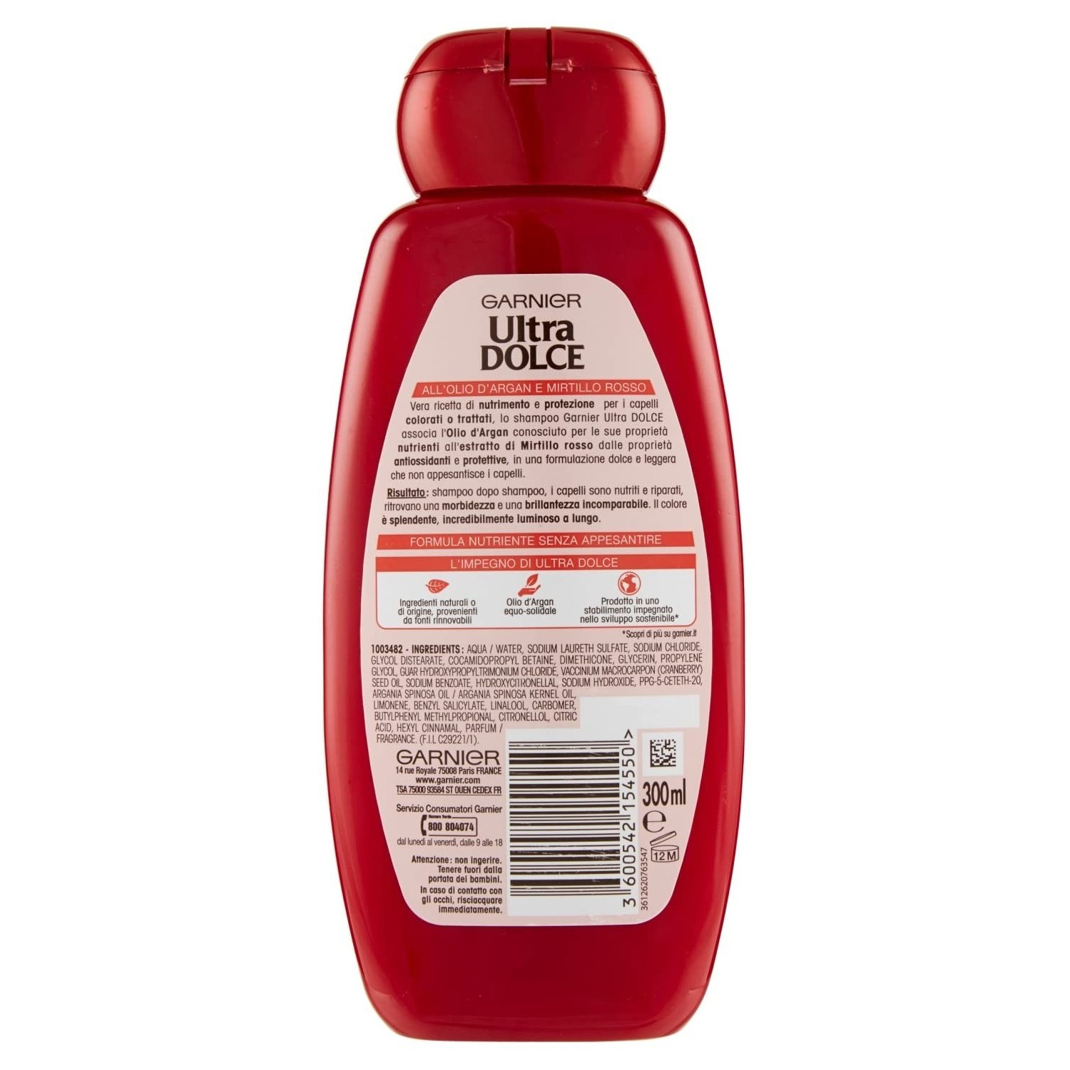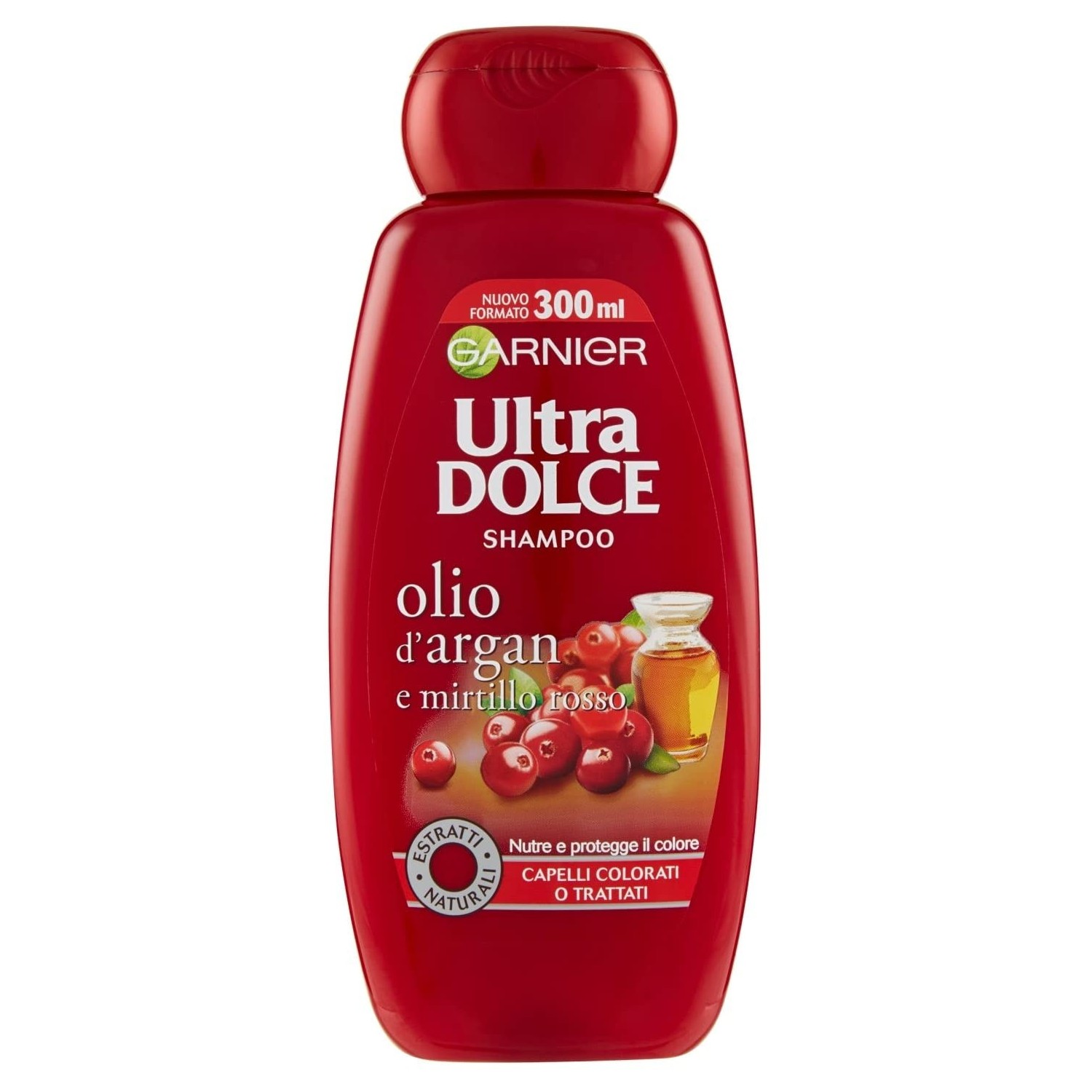 - Linea: Garnier Ultra Dolce Olio di Argan e Mirtillo Rosso — per capelli colorati.