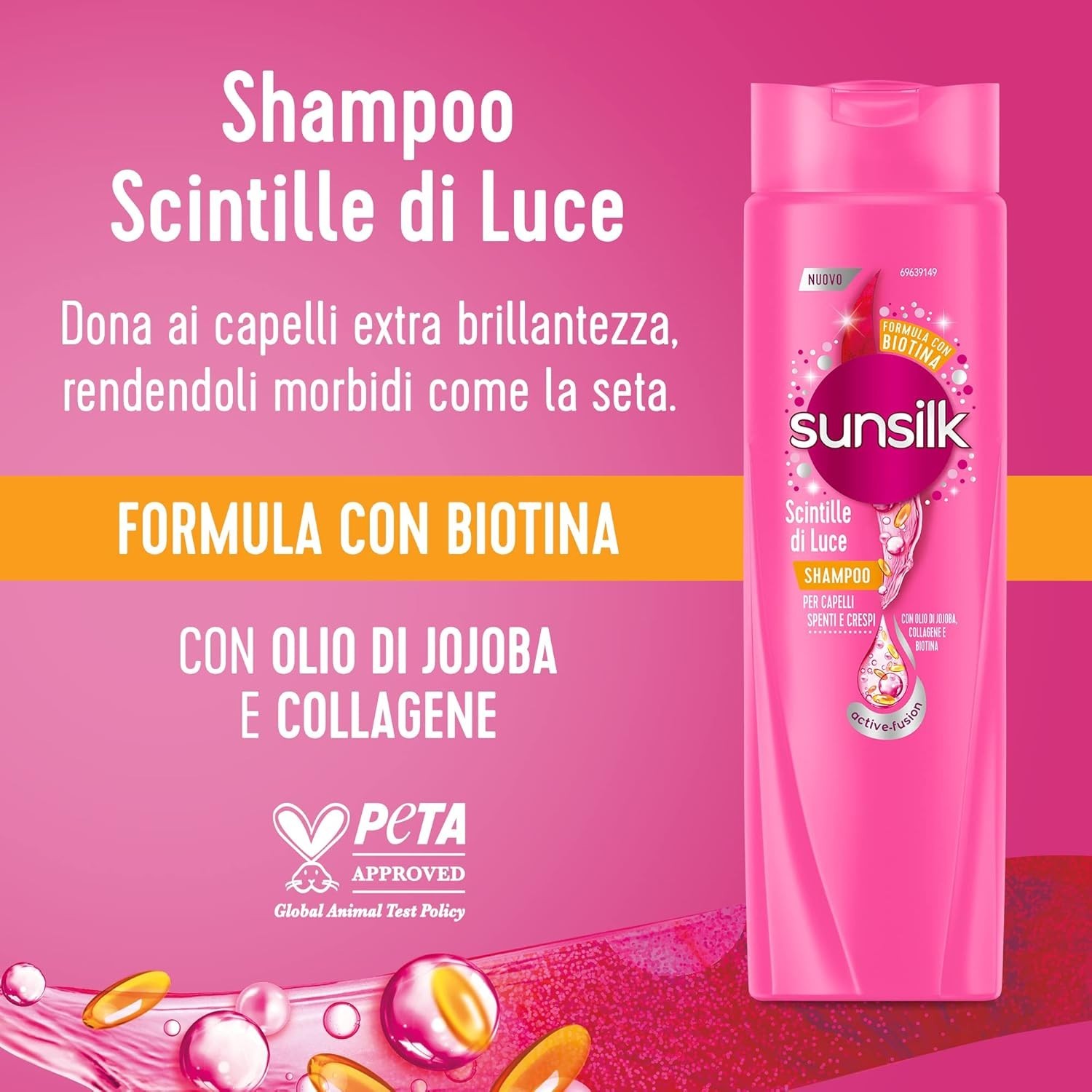 - Extra Brillantezza: Il Sunsilk Shampoo Scintille di Luce dona ai capelli una lucentezza straordinaria.