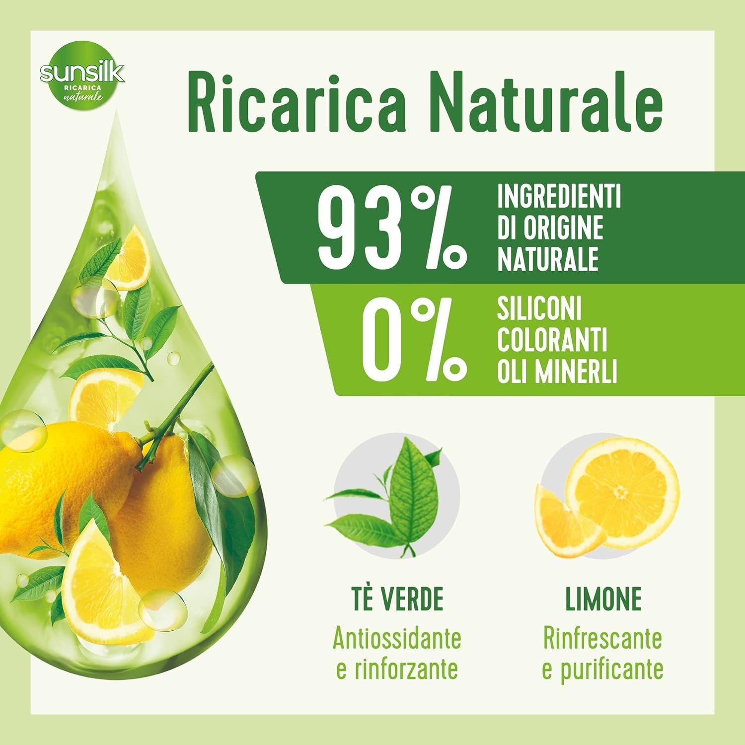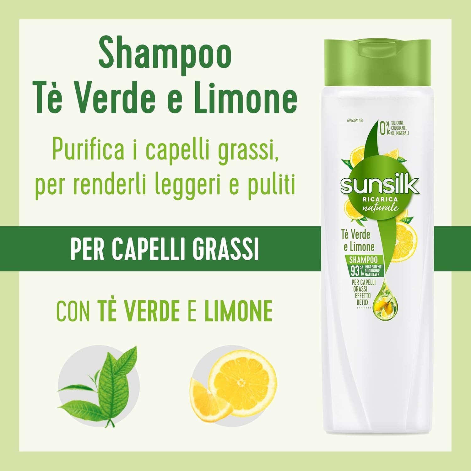 - Shampoo Purificante: Il Sunsilk Shampoo Tè Verde e Limone Detox purifica i capelli grassi, rendendoli leggeri e puliti più a lungo.