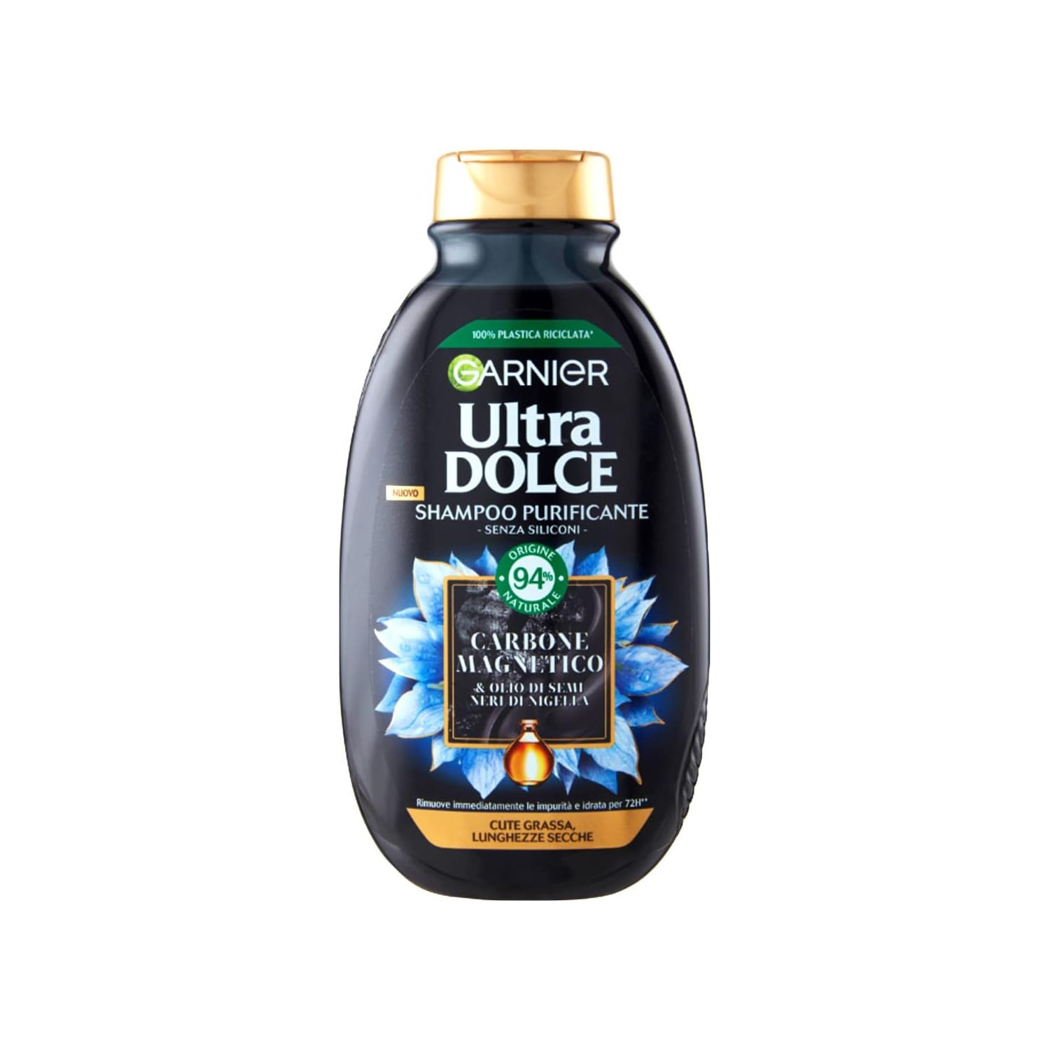 Lo Shampoo Garnier Carbone Magnetico della linea Shampoo Ultra Dolce Carbone è stato formulato per purificare il cuoio capelluto e idratare in profondità le lunghezze.