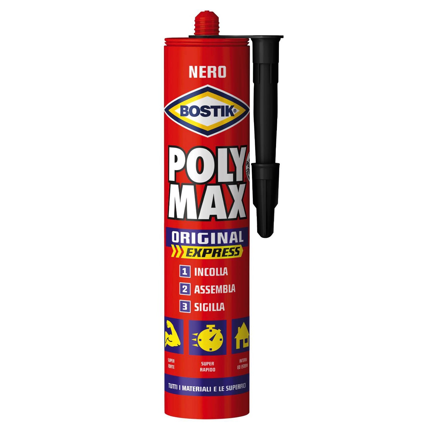 Bostik PolyMax Original Express è la colla di montaggio e colla sigillante di prima qualità, super rapida e con elevata tenuta finale. Ideale per l'incollaggio, il montaggio e la sigillatura di quasi tutti i materiali da costruzione, praticamente su tutte le superfici, sia lisce e porose che non porose.