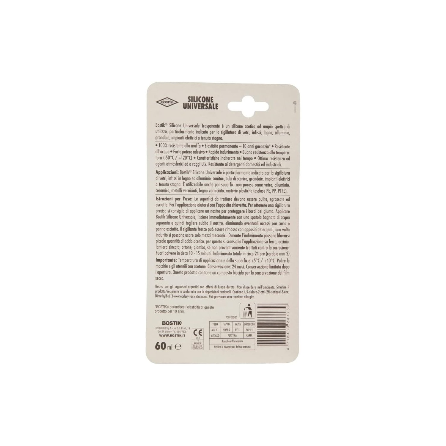 Silicone Trasparente Sigillante Universale Acetico Antimuffa Bostik 60ml