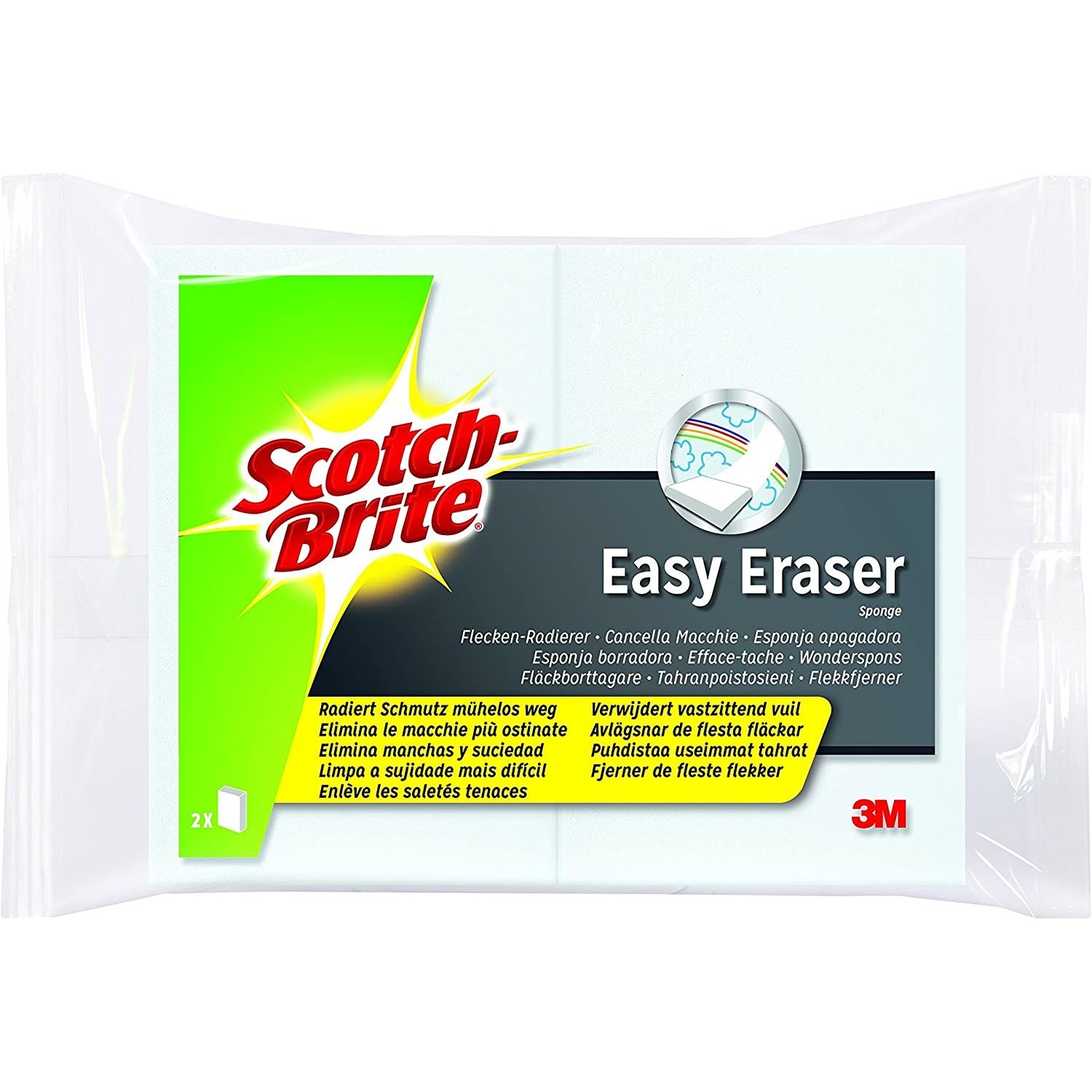 Il suo rivoluzionario sistema è in grado di pulire segni di vernice, di matita e di pennarello, calcare, righe sui pavimenti, impronte, gocce di grasso e muffa. Confezione da 2 spugne.