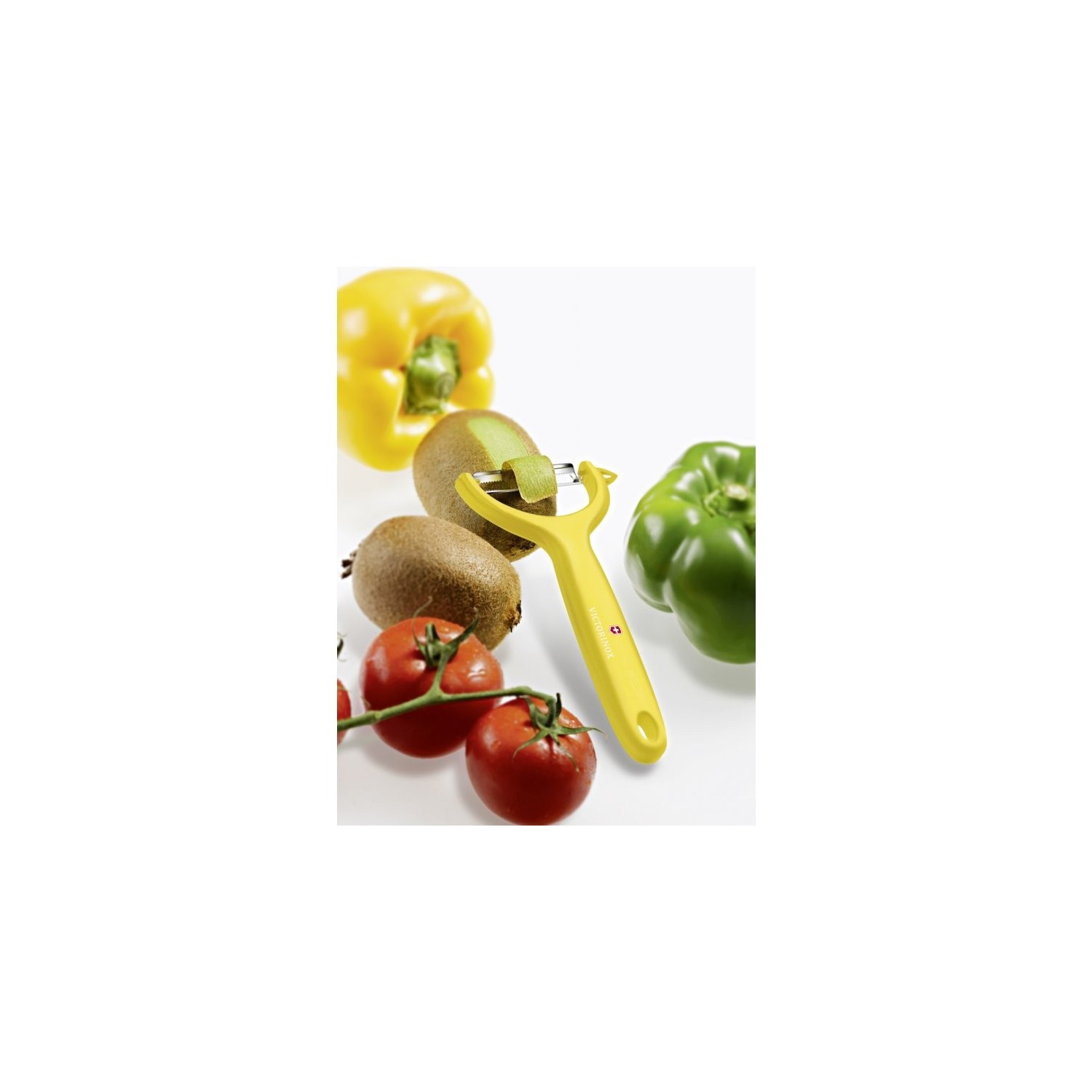 Pelakiwi realizzato in acciaio e plastica. Estremamente pratico e performante è perfetto per pelare qualsiasi frutto/verdura avente una buccia molto sottile. La testa oscillante si adatta rapidamente alla superficie da tagliare. Caratterizzato della consueta alta qualità Victorinox. Adatto al lavaggio in lavastoviglie. Gli accessori da cucina Victorinox sono adatti sia per un uso domestico che per un intenso utilizzo a livello professionale. Sono tutti contraddistinti dall'ottima qualità e purezza dell'acciaio inox impiegato che garantisce un taglio preciso e sottile. M