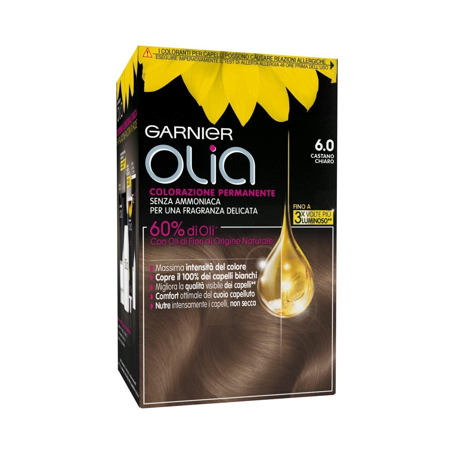 Tinta capelli olia di Garnier è ideale per chi desidera un castano chiaro luminoso con copertura completa dei capelli bianchi.