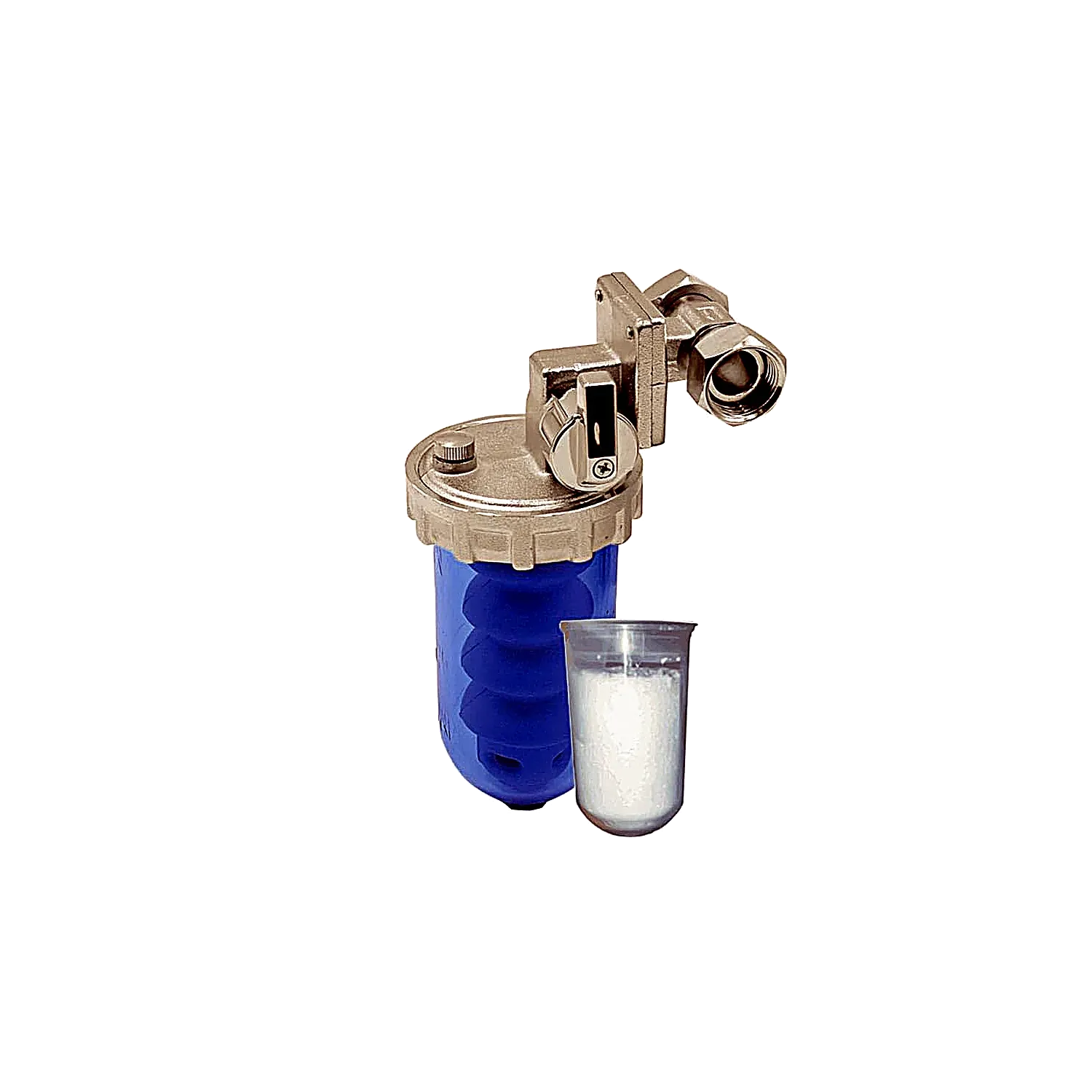 Aprire il corpo del dosatore, versare la ricarica in polvere di polifosfati, richiudere ermeticamente e aprire la valvola by-pass.