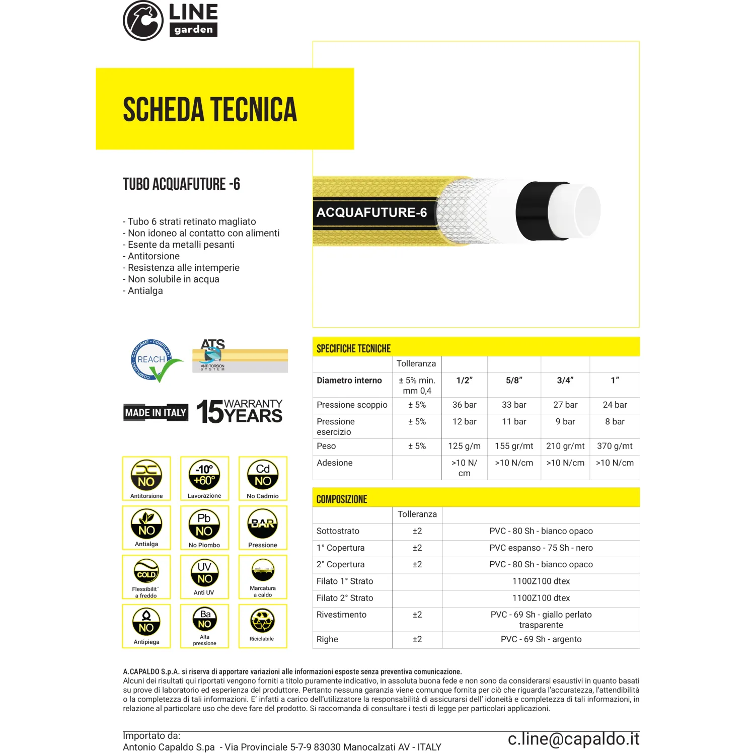 Specifiche tecniche del Tubo da Innaffiare Acquafuture: